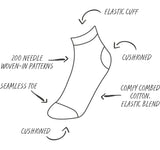 Each pair of socks is made with high quality woven cotton that feels soft and luxurious and features extra padding in the toes and heels to make your feet extra happy.