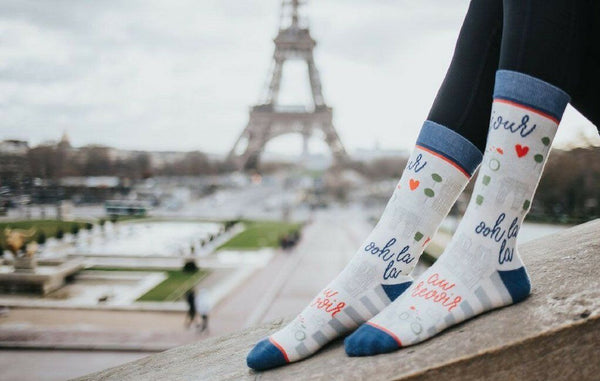 Sock-re bleu! If you are in "Louvre" with Paris like we are, this is the PERFECT sock for you! You will look oh so Francy in this adorable sock dedicated to the City of Love!