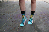 Our socks are designed to fit most of the human race: USA Women's Shoe sizes 6-12, and USA Men's up to size 11 comfortably.