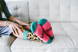 "Wild thing, you make my heart sing..." You can say that again. We are wild for these leopard print socks. Blended with the highest grade cotton combined with an eccentric bold pattern make this pear a show stopper for every sock drawer. Besides, who can resist bright pink bottoms? Go ahead. Let your inner wild-child out.